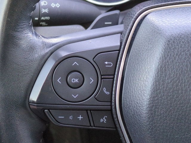 This vehicle includes the following Features: Camry Hybrid SE, Ford Blue Advantage: Blue Certified Certified, 4D Sedan, 2.5L I4 DOHC 16V, eCVT, FWD, Predawn Gray Mica, Ash w/Fabric Seat Trim w/SofTex, Wheels: 8.0J x 18 Black Machined-Finish Alloy, 4-Wheel Disc Brakes, 6 Speakers, ABS brakes, Air Conditioning, Alloy wheels, AM/FM radio: SiriusXM, Apple CarPlay/Android Auto, Auto High-beam Headlights, Automatic temperature control, Brake assist, Bumpers: body-color, Delay-off headlights, Driver door bin, Driver vanity mirror, Dual front impact airbags, Dual front side impact airbags, Electronic Stability Control, Emergency communication system: Safety Connect with 1-year trial, Exterior Parking Camera Rear, Fabric Seat Trim w/SofTex, Four wheel independent suspension, Front anti-roll bar, Front Bucket Seats, Front Center Armrest, Front dual zone A/C, Front reading lights, Front Sport Bucket Seats, Fully automatic headlights, Illuminated entry, Knee airbag, Leather Shift Knob, Low tire pressure warning, Occupant sensing airbag, Outside temperature display, Overhead airbag, Overhead console, Panic alarm, Passenger door bin, Passenger vanity mirror, Power door mirrors, Power driver seat, Power steering, Power windows, Radio data system, Radio: AM/FM Audio System, Rear anti-roll bar, Rear reading lights, Rear seat center armrest, Rear side impact airbag, Rear window defroster, Remote keyless entry, Security system, Speed control, Speed-sensing steering, Split folding rear seat, Spoiler, Sport steering wheel, Steering wheel mounted audio controls, Telescoping steering wheel, Tilt steering wheel, Traction control, Trip computer, and Variably intermittent wipers.