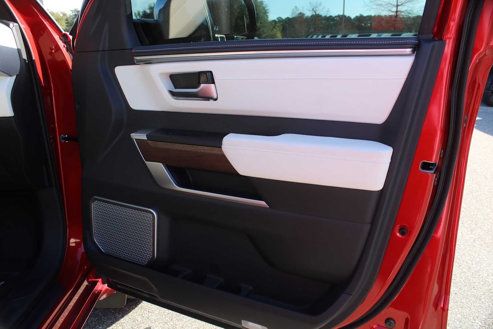 Leather Seats, Third Row Seat, Navigation, Sunroof, Panoramic Roof, 4x4, Quad Bucket Seats, Power Liftgate, Rear Air, Heated Driver Seat, Heated Rear Seat, Cooled Driver Seat, Cooled Rear Seat, Back-Up Camera, Running Boards. Rear Spoiler, MP3 Player, Remote Trunk Release, Privacy Glass, Keyless Entry. Toyota Capstone with Supersonic Red exterior and BLACK/WHITE interior features a V6 Cylinder Engine with 437 HP at 5200 RPM*.