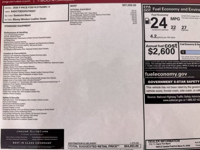 2026 Jaguar F-PACE P250 R-Dynamic S 2.0L I4 Turbocharged AWD 8-Speed Automatic BLACK