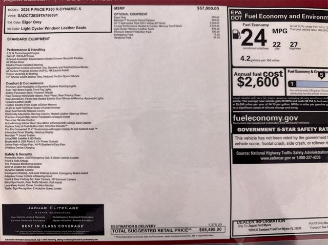 2026 Jaguar F-PACE P250 R-Dynamic S 2.0L I4 Turbocharged AWD 8-Speed Automatic GREY